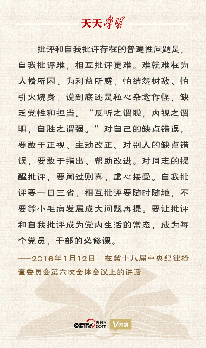 批评和自我批评是党的三大作风之一,是党的建设的重要法宝。习近平总书记指出,批评和自我批评是清除党内政治灰尘和政治微生物的有力武器。要让批评和自我批评成为党内生活的常态,成为每个党员、干部的必修课。
