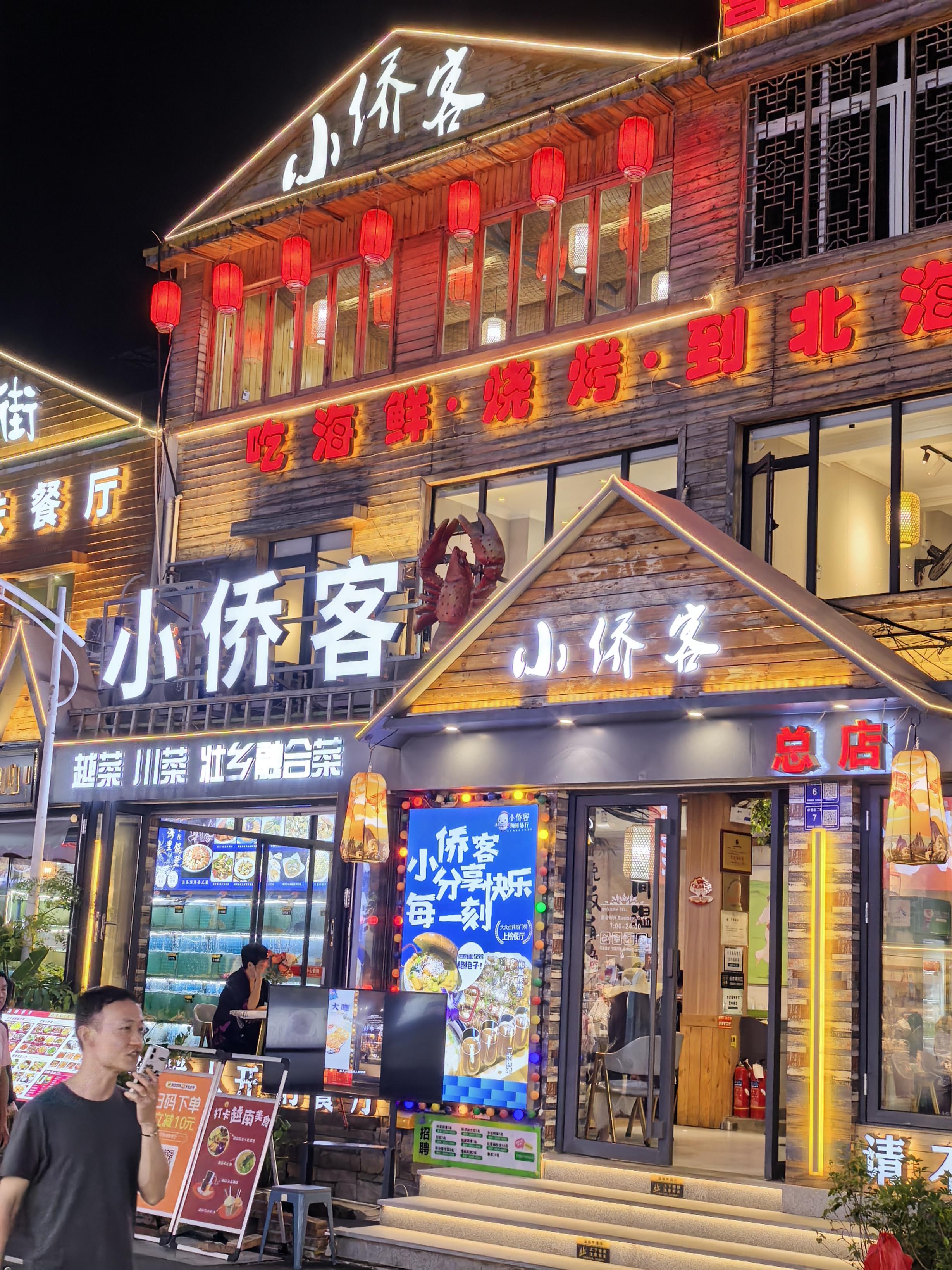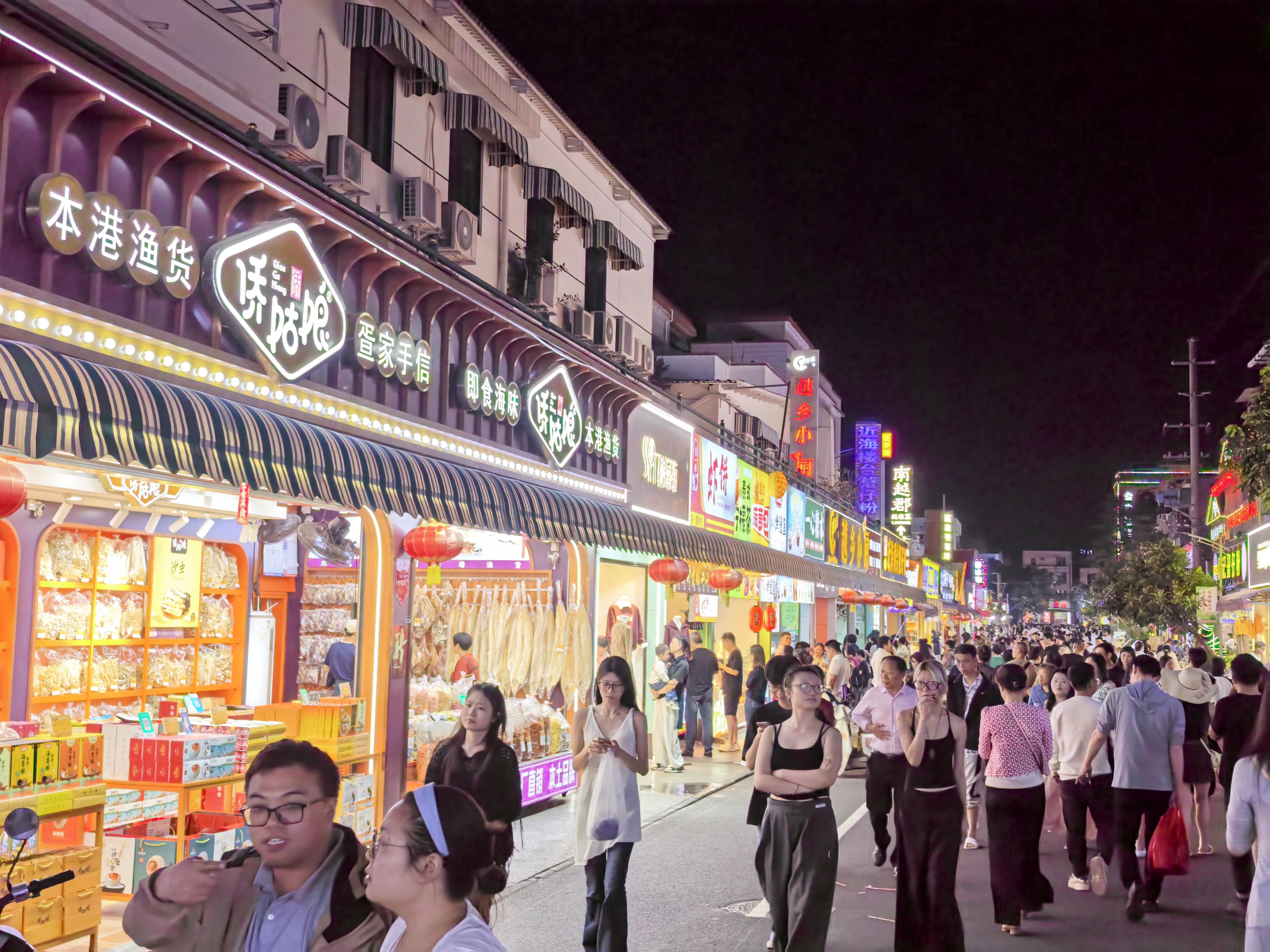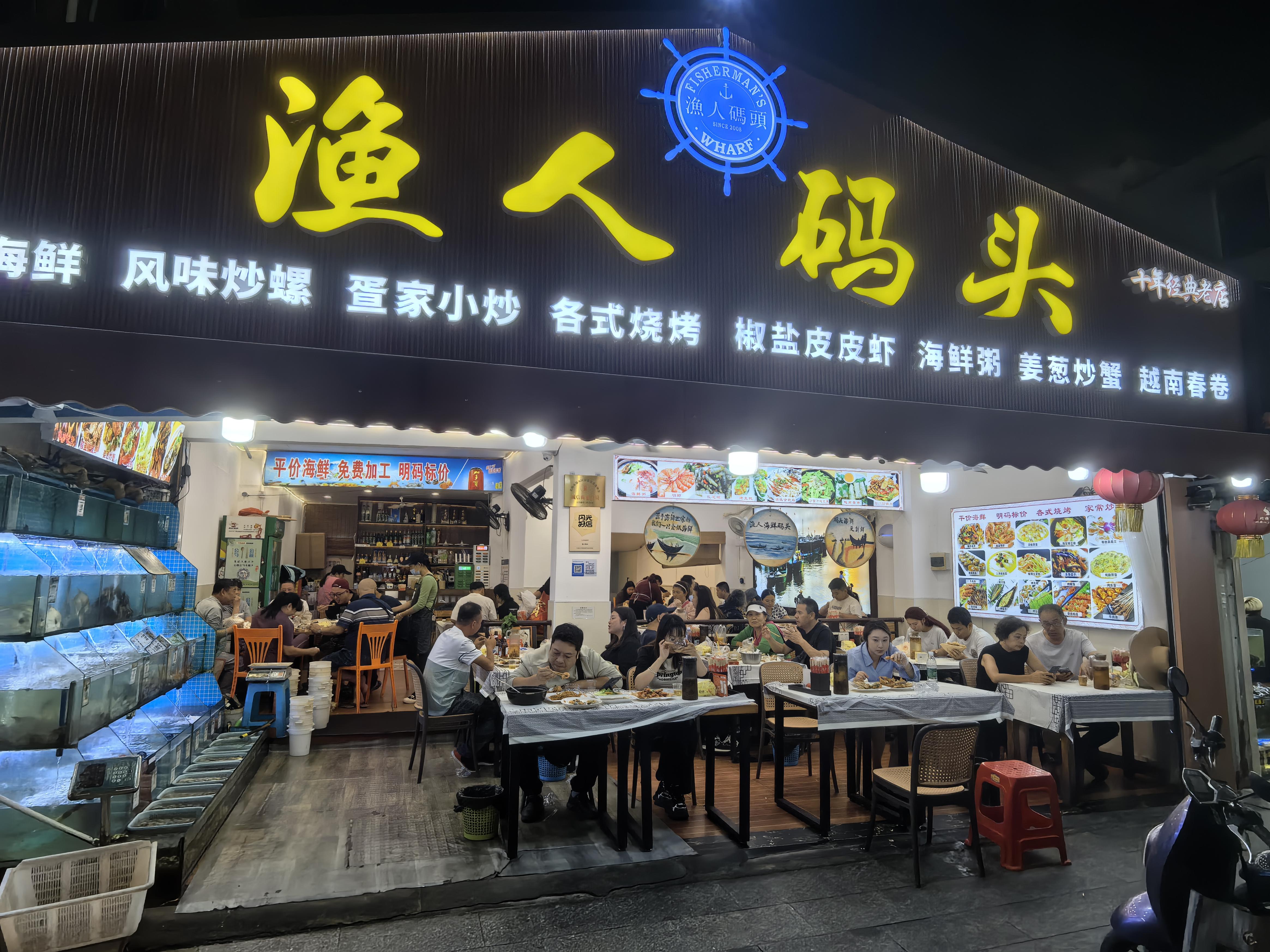 到了广西北海,不能不去人气超高的侨港风情街。这是一条融合东南亚风情与疍家文化(注)的网红美食街,以越南风味小吃和海鲜大排档闻名,1978年为安置越南归侨建成,现存彩色骑楼与渔船码头景观。