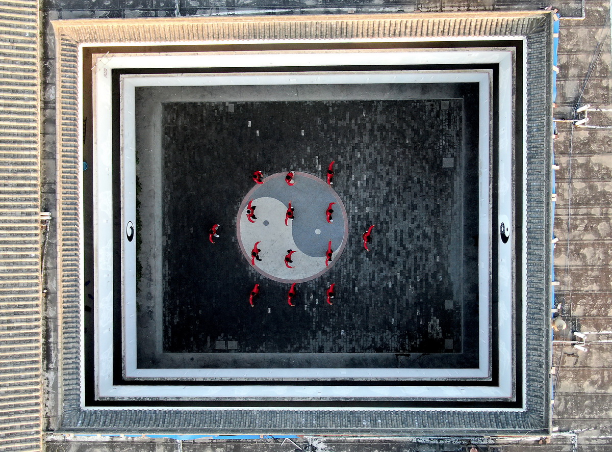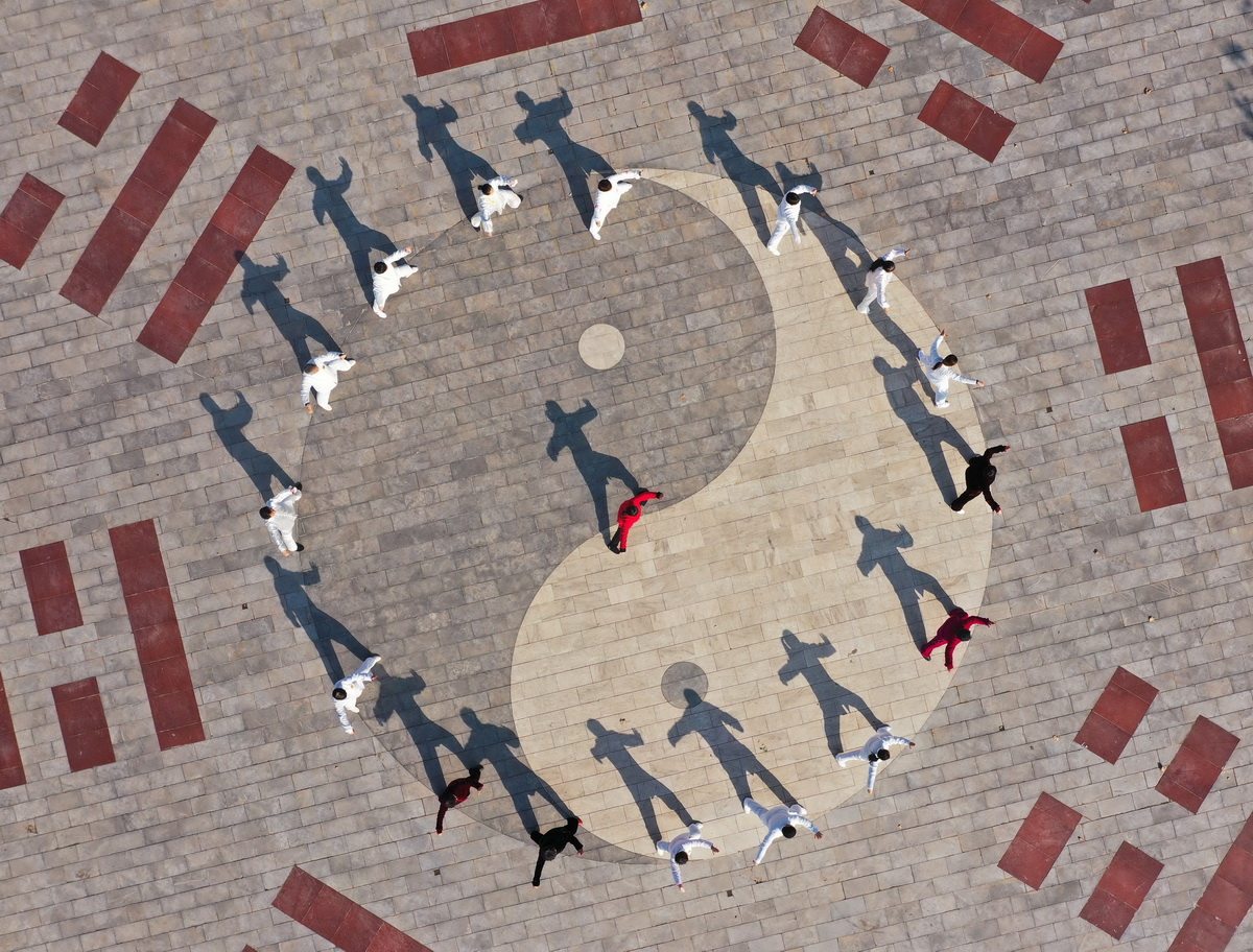10学员在河南省焦作市温县陈家沟的一个拳馆内练拳(无人机照片,12月14日摄)。