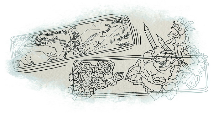早年间,学生们用的铅笔盒都是铁皮打的,盒盖正面印有各色图案。我的第一个铅笔盒上印着“武松打虎”,估计是入学前,父亲或母亲急慌去商店买来给我备用,并未想到精心挑个女孩喜欢的图案。从第一眼,我就觉得这幅画不好看,歪歪扭扭的枯干松树、趴在地上惨兮兮的老虎和一个正在挥拳头的邋里邋遢的古代男子,毫无美感。