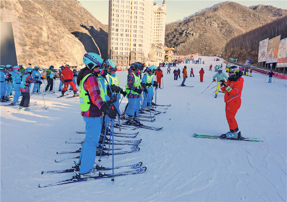 这是2019年1月7日,一名教练在张家口市崇礼区万龙滑雪场给学员讲解滑雪技巧。新华社记者 杨世尧 摄