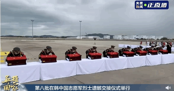 9月2日,第八批在韩中国人民志愿军烈士遗骸由我空军专机护送从韩国接回辽宁沈阳,109位志愿军烈士英灵及1226件相关遗物,回到了祖国怀抱。从2014年至今,我国已先后八次迎接825位在韩志愿军烈士遗骸回国。
